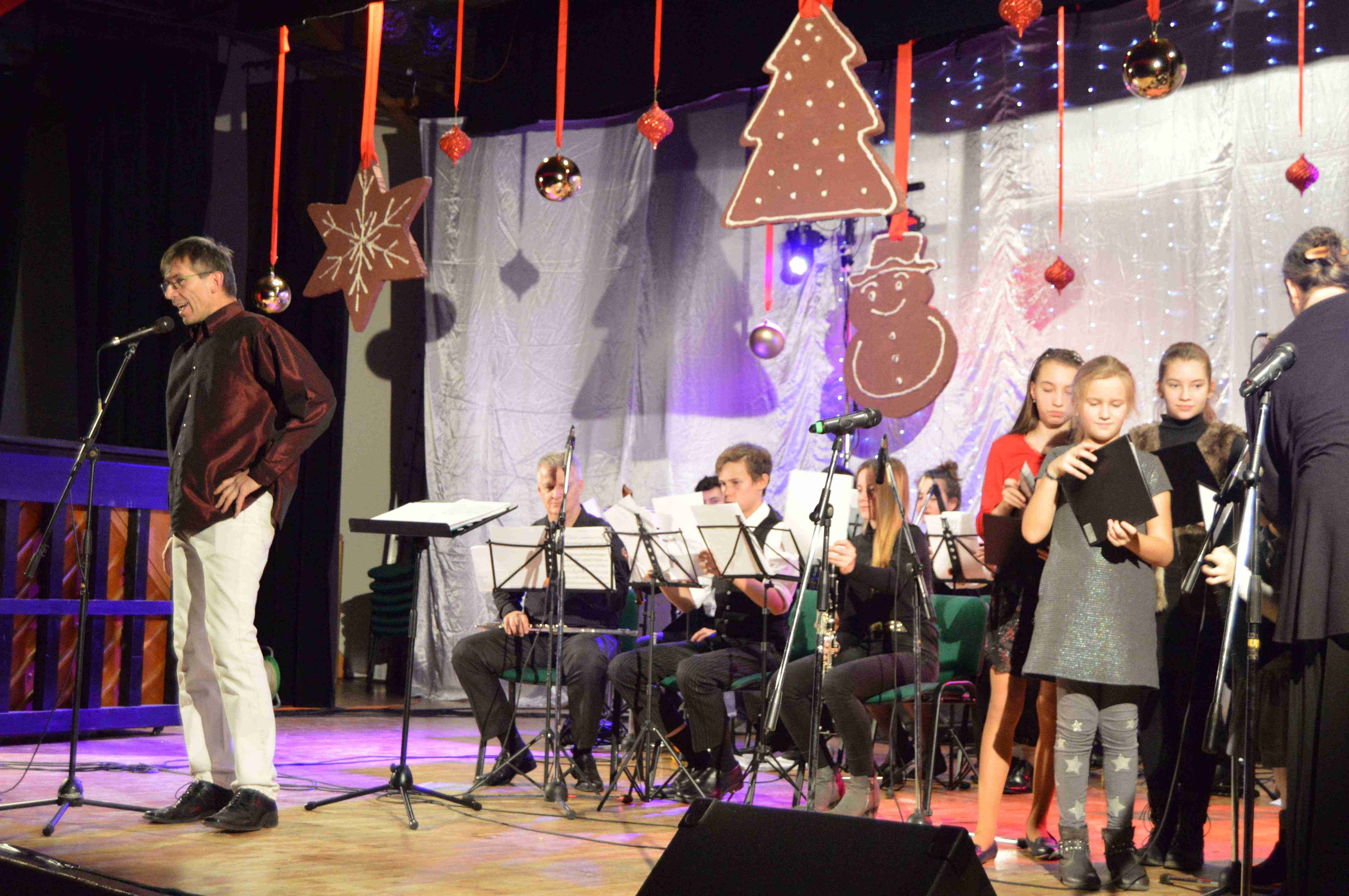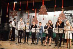 Společenské centrum Jesenice bylo ve čtvrtek zaplněné do posledního místa. Na adventní koncert, který již tradičně připravují žáci a učitelé základní umělecké školy přišli nejen rodiče a další příbuzní všech vystupujících, ale také spolužáci, kolegové současní i bývalí, někteří nově zvolení zastupitelé, zkrátka všichni, kteří si našli čas alespoň chvilku prožívat advent trochu jinak. Na scéně, kterou v duchu Vánoc vytvořili výtvarníci Pavla Naďová a Tibor Rozsnyó se svými žáky, vystoupily v první polovině koncertu sólově tři klavíristky a různá komorní uskupení: houslový soubor, flétnové soubory, akordeony, duo trumpetové, violoncellové, kytarové, trio saxofonů s pěveckým souborem, děvčata z literárně dramatického oboru předvedla scénicky zpracovaný úryvek z Malého prince a malé tanečnice choreografii Tanec pro radost. Touto částí programu provázeli Anička a Patrik, dvojice šikovných moderátorů z literárně dramatického oboru ZUŠ. Druhá polovina programu patřila školnímu orchestru Jesband pod vedením Josefa Bárty, který si tentokrát kromě pěveckého souboru Jany Hrdličkové pozval hosty z profesionálních scén: zpěvačku a herečku z Ordinace v růžové zahradě Petru Pudovou, zpěvačku Ivanu Košínovou a zpěváka, skladatele, textaře, aranžéra a producenta Jarka Šimka. Jako host z nedaleké Kamenice vystoupil s Jesbandem také pěvecký sbor dospělých pod vedením sbormistryně Alžběty Brzotické. Velký a zasloužený aplaus patřil Janě Hrdličkové za obdivuhodný výkon v náročném duetu Christiny a Erika z muzikálu Fantom opery. V závěru pak zazněla v podání obou sborů, orchestru, všech sólistů i některých posluchačů v publiku tradiční vánoční píseň Narodil se Kristus Pán.