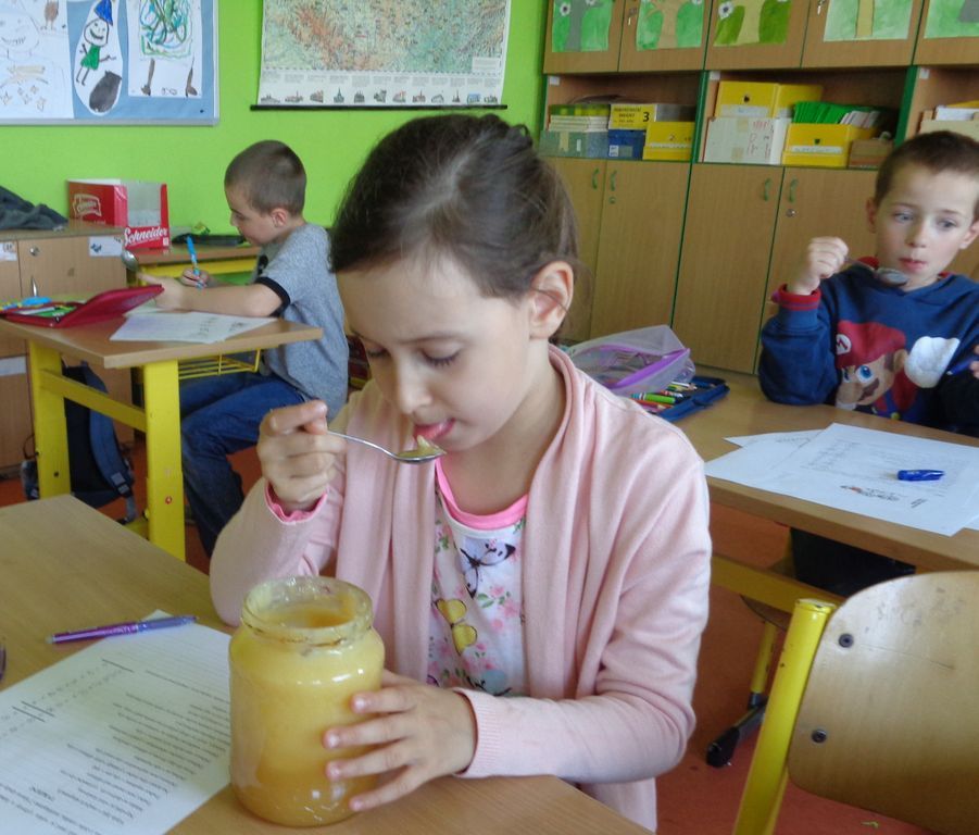 Pak jsme se věnovali pracovním listům. Museli jsme využít své dovednosti při čtení s porozuměním, luštili jsme tajenky a počítali. Dověděli jsme se, že včelí rodinu tvoří matka, dělnice a trubci. Každý má svůj úkol a včelstvo by bez něj zahynulo. I dělnice mají práci rozdělenou. Včelám pracujícím v úlu se říká mladušky. Podle potřeb včelstva procházejí postupně různými funkcemi. Nejprve pracují jako čističky buněk v plástvi, potom jsou krmičky, kojičky, stavitelky a strážkyně česna. Z nejstarších dělnic se stanou létavky, které se vydávají do světa, aby přinášely do úlu nektar a pyl z květů, materiál na propolis a vodu. Život včely je krátký, v létě se dožívá asi šesti týdnů. Včely, které se narodí na podzim, mohou přežít celou zimu. Z nektaru dělají včely med květový, z medovice získávané v lese med medovicový. Povídání o včelách by nebylo úplné bez ochutnávky medu, který od svých včeliček přinesla paní učitelka Hesová.