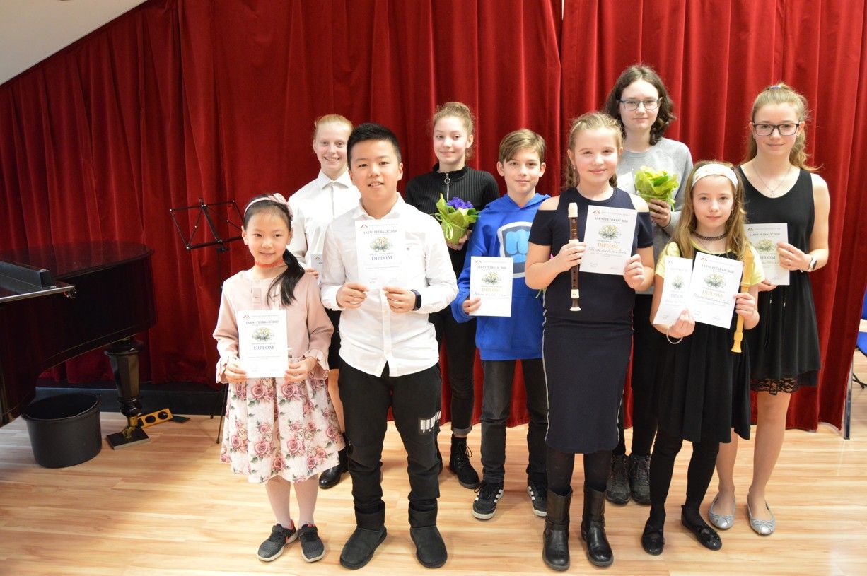 STŘÍBRNÉ PÁSMO: pěvecké trio Michaela, Nela a Tereza, klavírní duo Klára a Linda, klavírní duo Erik a Vivian