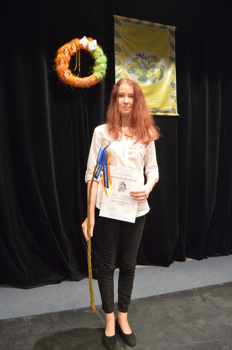Ve finále 31. ročníku, které se konalo v kulturním domě Krakov v Praze 8 ve čtvrtek 21. března, naši školu reprezentovalo v pěti kategoriích ze šesti celkem 13 žáků. Ti do tohoto finále postoupili jako vítězové školních kol, která se u nás konala ve dnech 5. a 6. března. Ve všech kategoriích se letos sešla velmi kvalitní konkurence a některé výkony byly na mimořádně vysoké úrovni. Naši žáci získali celkem 6 umístění v bronzovém pásmu: Lucie D. v kategorii mladších zpěváků, Tereza T. v kategorii starších zpěváků, Klára K. a Tereza P. v kategorii mladších instrumentalistů, Tatiana S. v kategorii starších instrumentalistů, saxofonové trio AJA (Anička B., Jakub Š., Anika S.) v kategorii komorních souborů. Nejvýše dosáhl akordeonista Samuel K. v kategorii starších instrumentalistů, který se umístil ve stříbrném pásmu. Poděkování za úspěšnou reprezentaci školy patří všem soutěžícím i učitelům, kteří tyto žáky na soutěž připravili: K. Badarovskému, J. Bártovi, J. Hrdličkové, M. Kořínkové a I. Pastierikové.