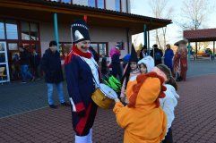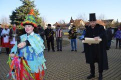 Masopustní oslavy, které již několikátým rokem organizuje město Jesenice, začaly v sobotu 8. února v jídelně naší základní školy, kde se od 14. hodiny scházeli velcí i malí účastníci průvodu. Maskovaní i nemaskovaní tu využili možnost dotvořit si masku z nabízeného materiálu na místě, případně se svěřit rukám a štětečkům pedagogů výtvarné výchovy, kteří jim na obličejích vytvářeli nejrůznější kreace odpovídající maskám či vlastní fantazii. V 15 hodin pak postava Masopusta vyzvala k zahájení reje a Pronobus po slibu, že všechny „maškary řádně se chovati budou“, převzal symbol masopustního práva z rukou rychtáře - starosty, jenž všechny hojně přítomné roztančil a poté pozval do průvodu a na hodování do „svého domu“ - městského úřadu, kde na všechny čekalo masopustní občerstvení a zábava především pro ty nejmenší s vyhodnocením nejlepších masek.