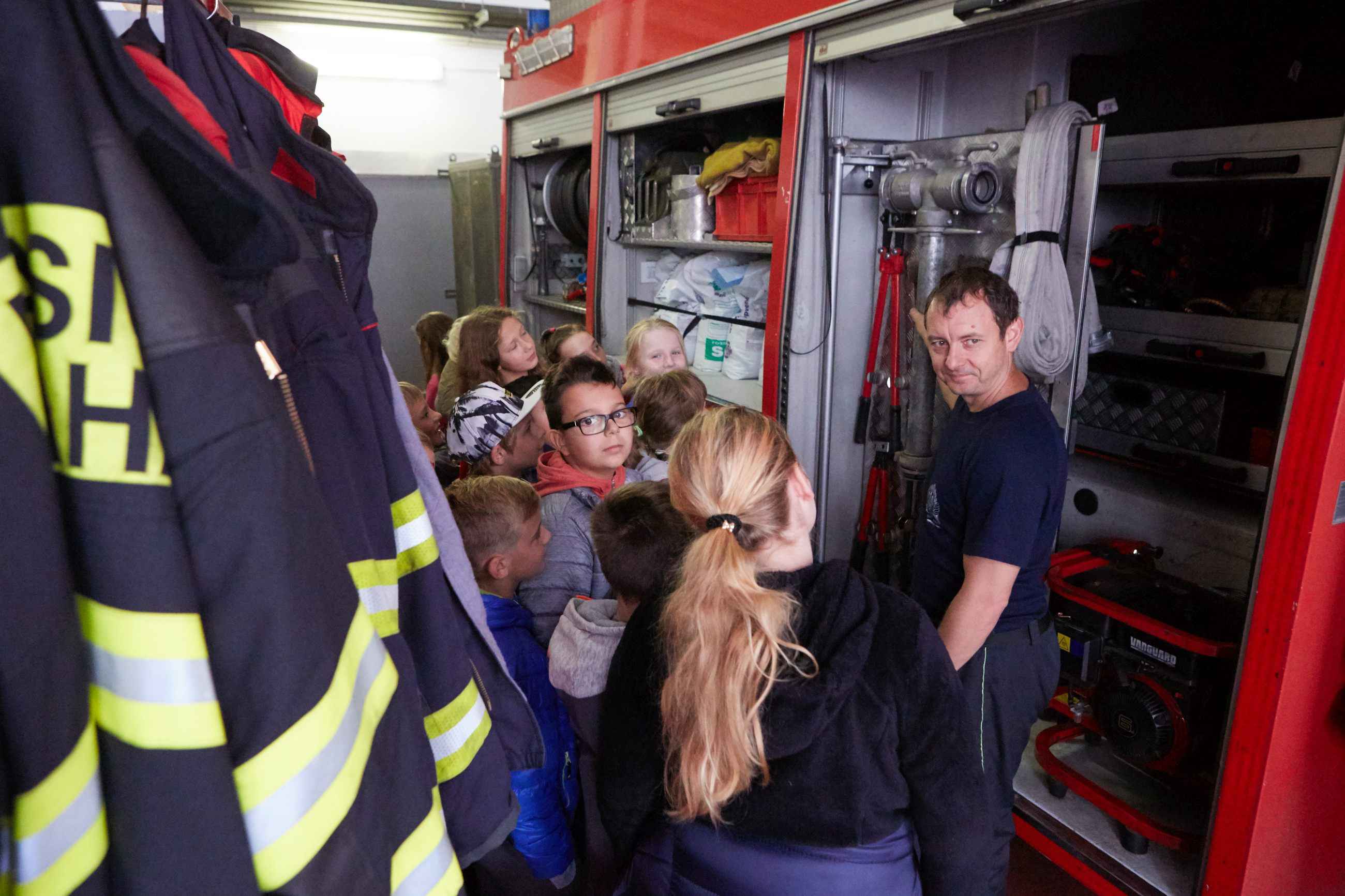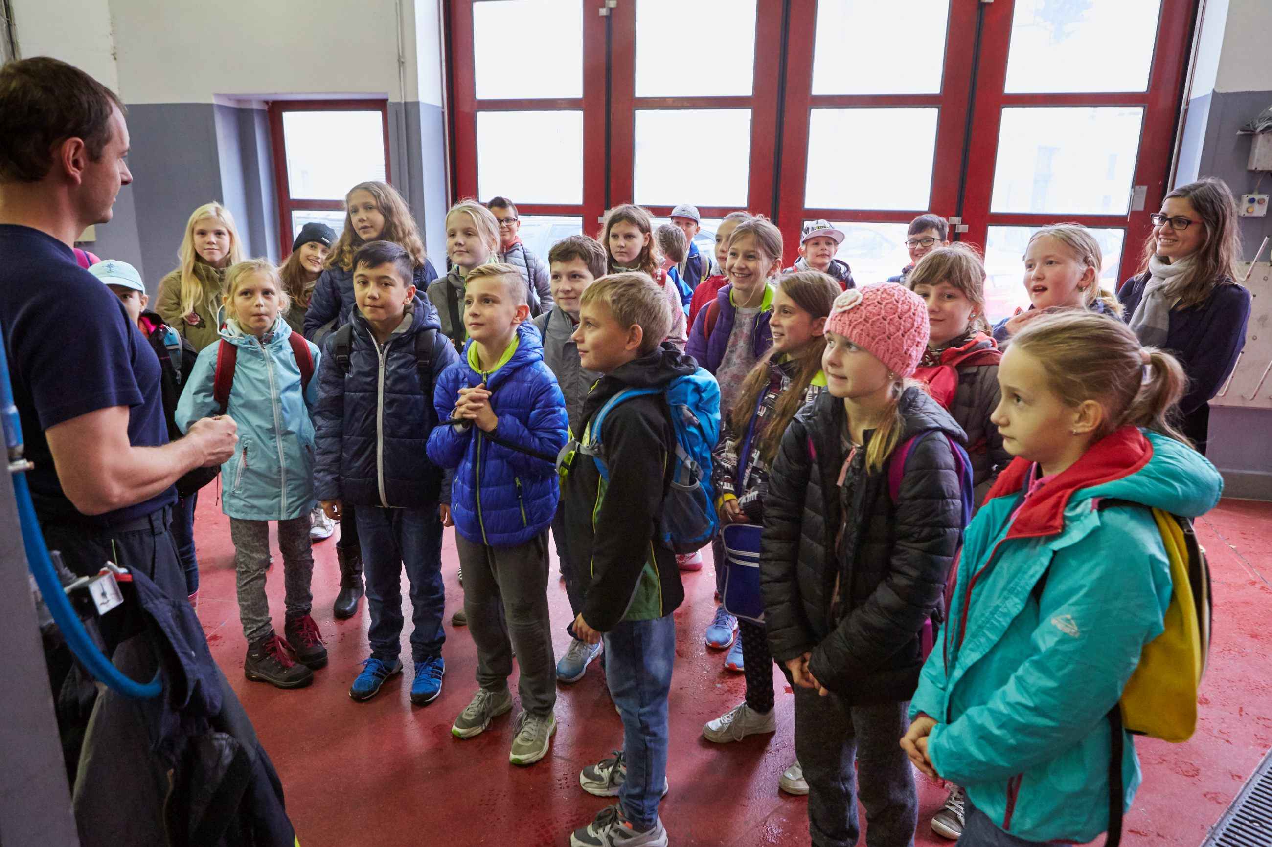 Žáci 5. tříd navštívili v rámci prvního oborového dne hasičský záchranný sbor v Praze. Žákům se věnovalo 6 hasičů, kteří žáky seznámili nejprve se svou činností a poté žákům umožnili projít některé prostory stanice. Žáci se mohli posadit do hasičského záchranného vozu, vyzkoušeli speciální helmy i kyslíkovou bombu, která vážila skoro stejně jako oni sami. Prohlédli si a potěžkali některá hasičská náčiní – stříkačky, hadice, sekyru nebo třeba beranidlo na vyrážení dveří. Hasiči jednoho ze žáků názorně naložili na nosítka, připevnili mu záchranný límec a demonstrovali tak záchranu a transport zraněných. Dále žáci viděli, jakým způsobem se hasič připravuje na výjezd. Nejvíce se jim líbily požární tyče a překvapilo je, že i uprostřed noci mají hasiči pouze dvě minuty na to, aby se probudili, připravili a nasedli do auta. Žáci měli na konci prostor pro dotazy. Všichni odcházeli s velice pozitivním zážitkem!