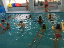 Pak jsme se vydali do jesenického bazénku, kde jsme si vyzkoušeli hodinu aqua aerobiku, abychom zjistili, že cvičení ve vodě je velmi náročné a unavující. A pak už rychle do školy na oběd.