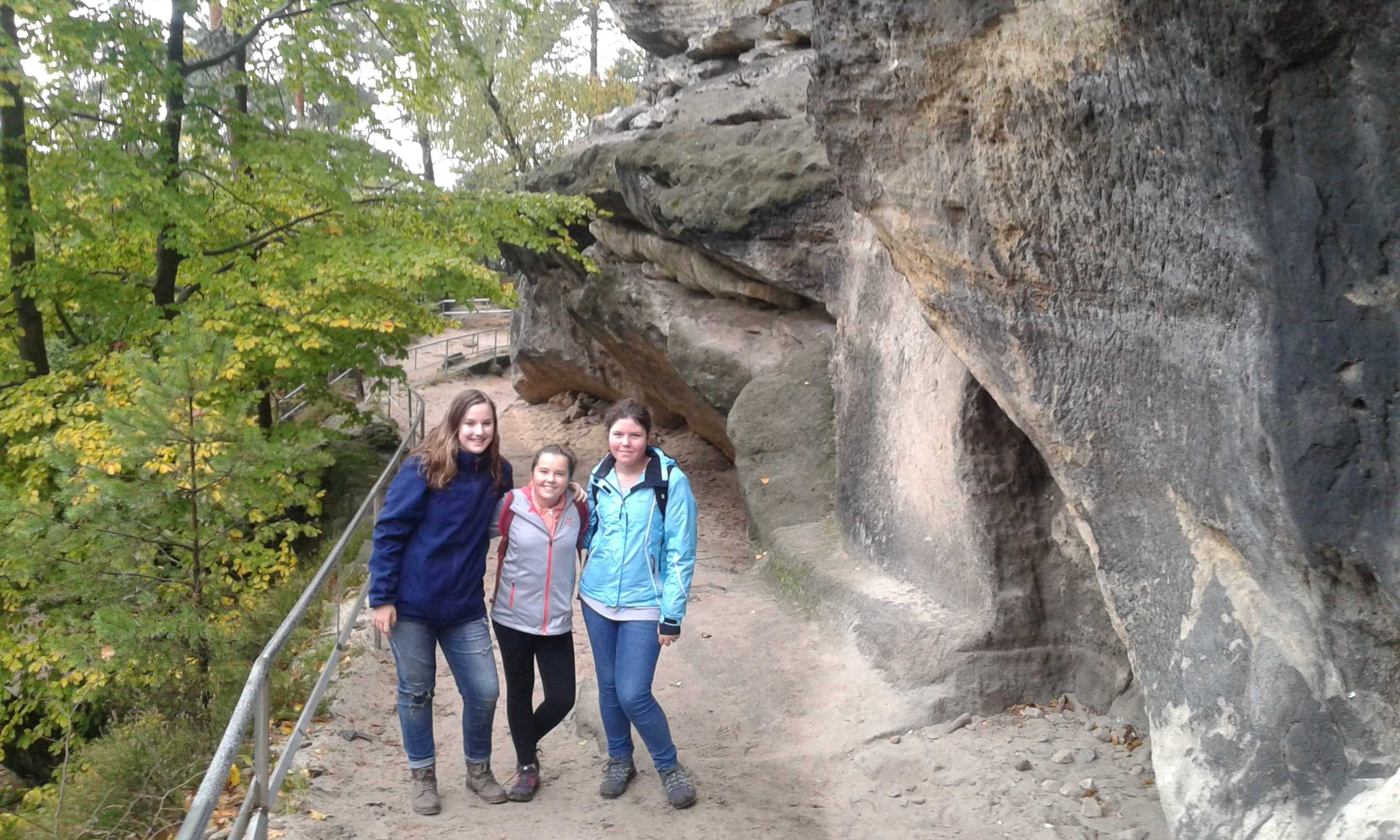 V tento den jsme navštívili Pravčickou bránu nacházející se až za Děčínem, poblíž německých hranic. Pro cestu k bráně jsme si zvolili delší cestu, která neměla být tak náročná a měla vést po horizontu, ale přesto si někteří z nás horizont představují jinak. Cesta byla dobrodružná, jelikož jsme museli zdolávat nejednu kalužinu, zablácený terén či kameny s pískem, ale o to jsme si cestu více užili, i když z nás doma asi radost neměli. Odměnou za tento terén pro nás byla Pravčická brána, která se nám na konci naší cesty zjevila. Zakoupili jsme si vstupenky, posilnili se a vydali se prozkoumávat jednotlivé vyhlídky.