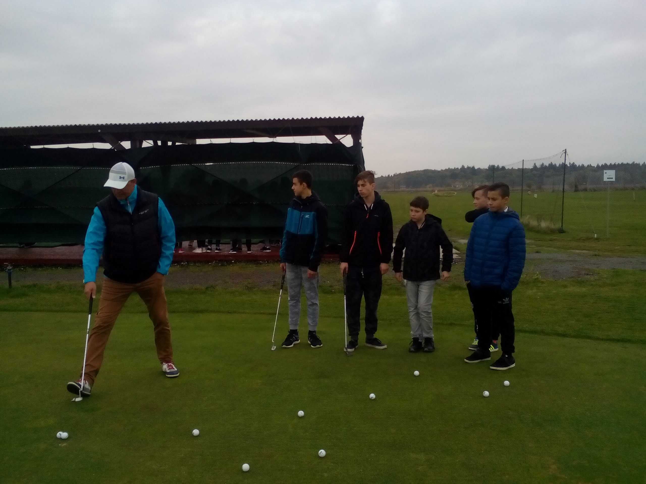 Dne 10. 10. 2017 se konal první oborový den v tomto školním roce. Ráno jsme se sešli ve třídě 9. A, kde nám p. učitel Čížkovský řekl základní instrukce k našemu oboru. První oborový den byl věnován golfu, proto jsme se vypravili na golfové hřiště v nedalekých Zdiměřicích. Tam na nás již čekali dva instruktoři, kteří nás seznámili s historií golfu a se základními pravidly hry. Potom jsme se rozdělili na dvě skupiny – praváky a leváky. Instruktoři nám ukázali, jak se odpaluje golfový míček a poté jsme si to i zkoušeli. Oborový den se nám moc líbil, těšíme se na další netradiční sport, který pro nás p. učitel připravil.