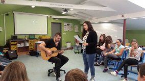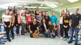 V prvním bloku oborového dne si děti připravily otázky, které poté použily při asi hodinovém rozhovoru s Davidem. Následovala hudební okázka, kdy nám David zahrál a zazpíval 2 písně, poté si vyslechl zpěv žákyně 9.A- Nikoly Tomšíkové a řekl jí cenné konstruktivní připomínky. V závěrečném bloku si celá oborová skupina s Davidem zazpívala píseň Halleluja a na konec se děti společně s mladým umělcem vyfotily a proběhla malá autogramiáda.