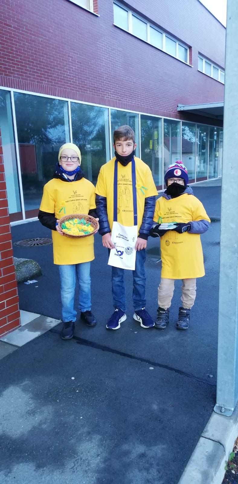 Ve středu 30. září se jesenická škola jako každým rokem, i přes netradiční podmínky, opět zúčastnila Českého dne proti rakovině. Dobrovolníky z řad žáků jste mohli vidět v žlutých tričkách před hlavním vchodem naší školy, ale také i u detašovaných pracovišť na ul. Budějovická i Zbraslavská. Žluté kvítky jste si mohli zakoupit i ve venkovních prostorách Sunny Canadian International School, s kterou každoročně na tomto charitativním projektu spolupracujeme. I přes značně odlišné podmínky, které jsme měli díky epidemiologické situaci, se všem zapojeným podařilo prodat přes 1000 kvítků měsíčku lékařského, a na pomoc onkologicky nemocným lidem jsme tedy mohli zaslat finanční částku 26 846 Kč. Všem, kteří jste na tuto sbírku přispěli, velmi děkujeme a přejeme prožité dny jen ve zdraví.