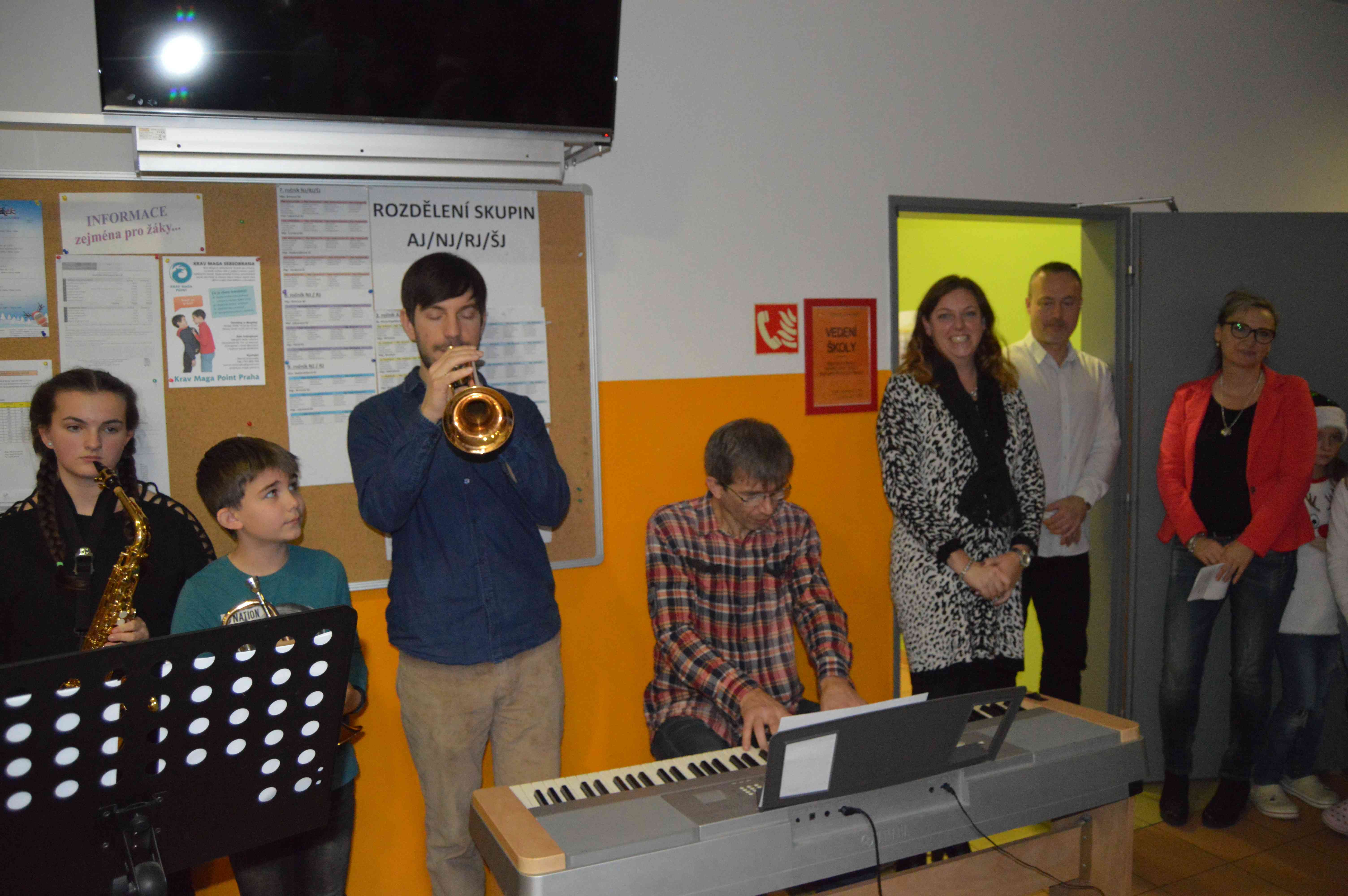 Několikaletá tradice „zpívání na schodech“ v jesenické škole pokračovala i letos a v pátek 21. prosince se chodby 1. patra školní budovy zaplnily žáky prvního i druhého stupně, aby si společně za hudebního doprovodu žáků a učitelů ZUŠ zapívali vánoční koledy a popřáli si se svými vyučujícími krásné Vánoce a hlavně ve škole úspěšný rok 2019. Jménem pedagogického sboru pak všem popřála ředitelka školy Jitka Novotná spolu se svými kolegy zástupci. Ji a její zástupce chvíli poté přivítal na městském úřadu nově zvolený starosta Pavel Smutný, který rovněž se svými místostarosty Ivou Řehulkovou a Martinem Kurucem popřál všem pedagogům pohodové vánoční svátky a všem navzájem pak především pro školu přínosnou spolupráci v roce 2019.