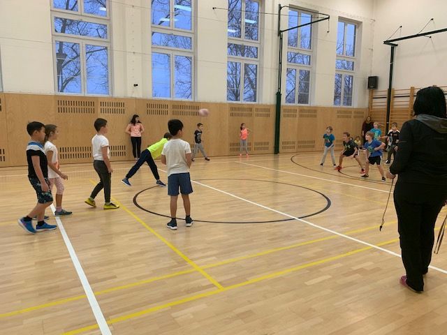 Středeční dopoledne patřilo 3. až 5. ročníku a bylo rozděleno na dvě části, a to na sportovní a výtvarnou. V tělocvičnách se soupeřilo ve vybíjené, ostatní prostory školy se pod vedením p. uč. Rozsnyóa proměnily ve výtvarný ateliér. Ve vybíjené soupeřily děti s velkou vervou a chutí být první, protože se hrálo o pohár a spoustu dobrot. Na prvním místě se umístily a vítězný pohár si odnesly třídy 3. D, 4. A, 5. C.