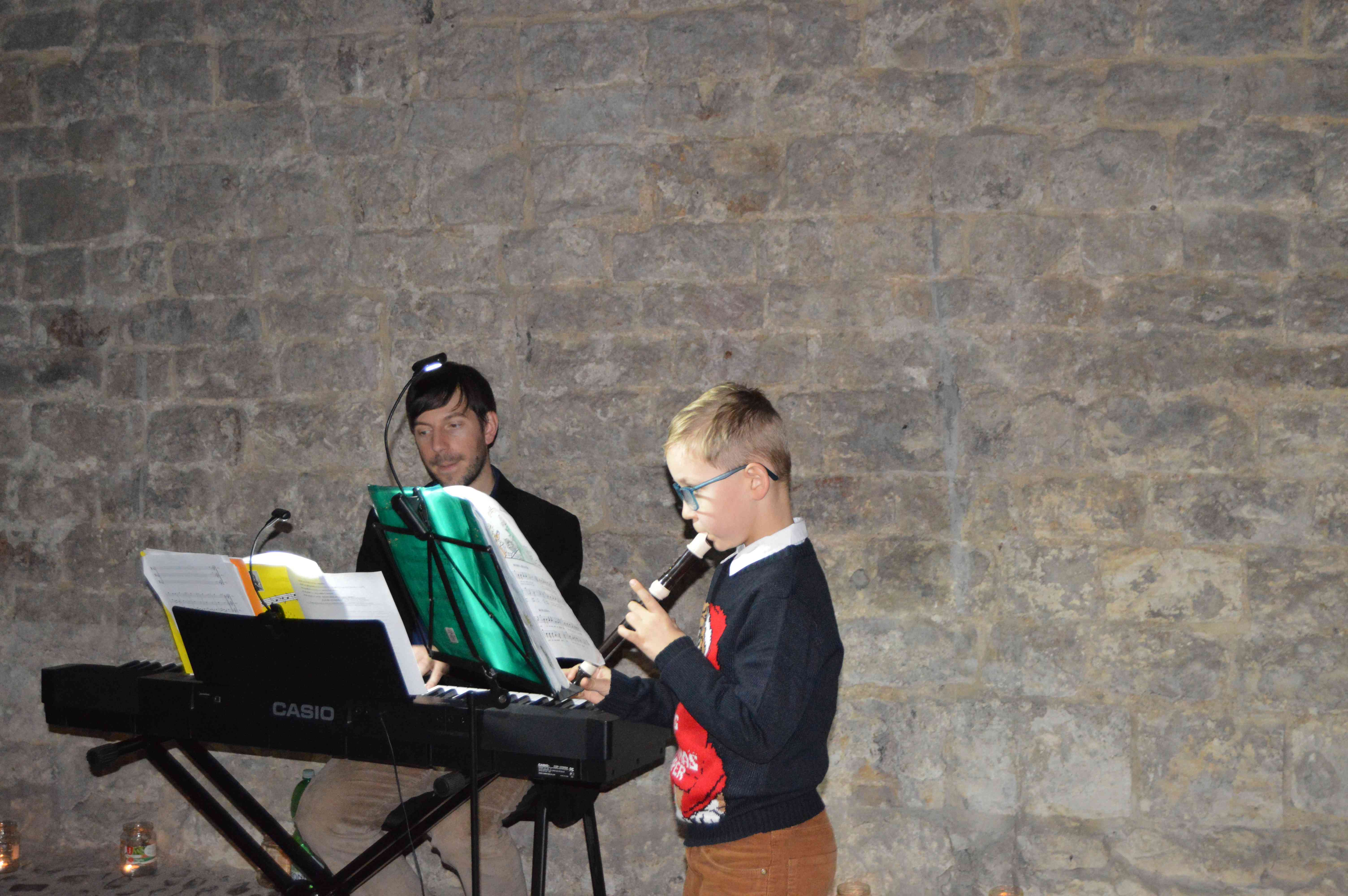 V pátek 21. 12. 2018 se konaly poslední vánoční přehrávky, které uzavřely celý týden těchto malých vánočních koncertů, určených rodičům našich žáků. Žáci Jakuba Šefla, učitele hry na dechové nástroje, se sešli v netradičním, krásném renesančním podzemí Staroměstské radnice v Praze, kde při světle svíček přednesli svůj vánoční program, složený nejen z koled, ale i z lidových písní a dalších skladeb. Hrálo se na zobcové flétny a trubky sólově či v duu s panem učitelem, který své žáky také doprovázel na klávesy. Tento malý vánoční koncert se konal s podporou kanceláře primátora Hlavního města Prahy.