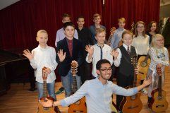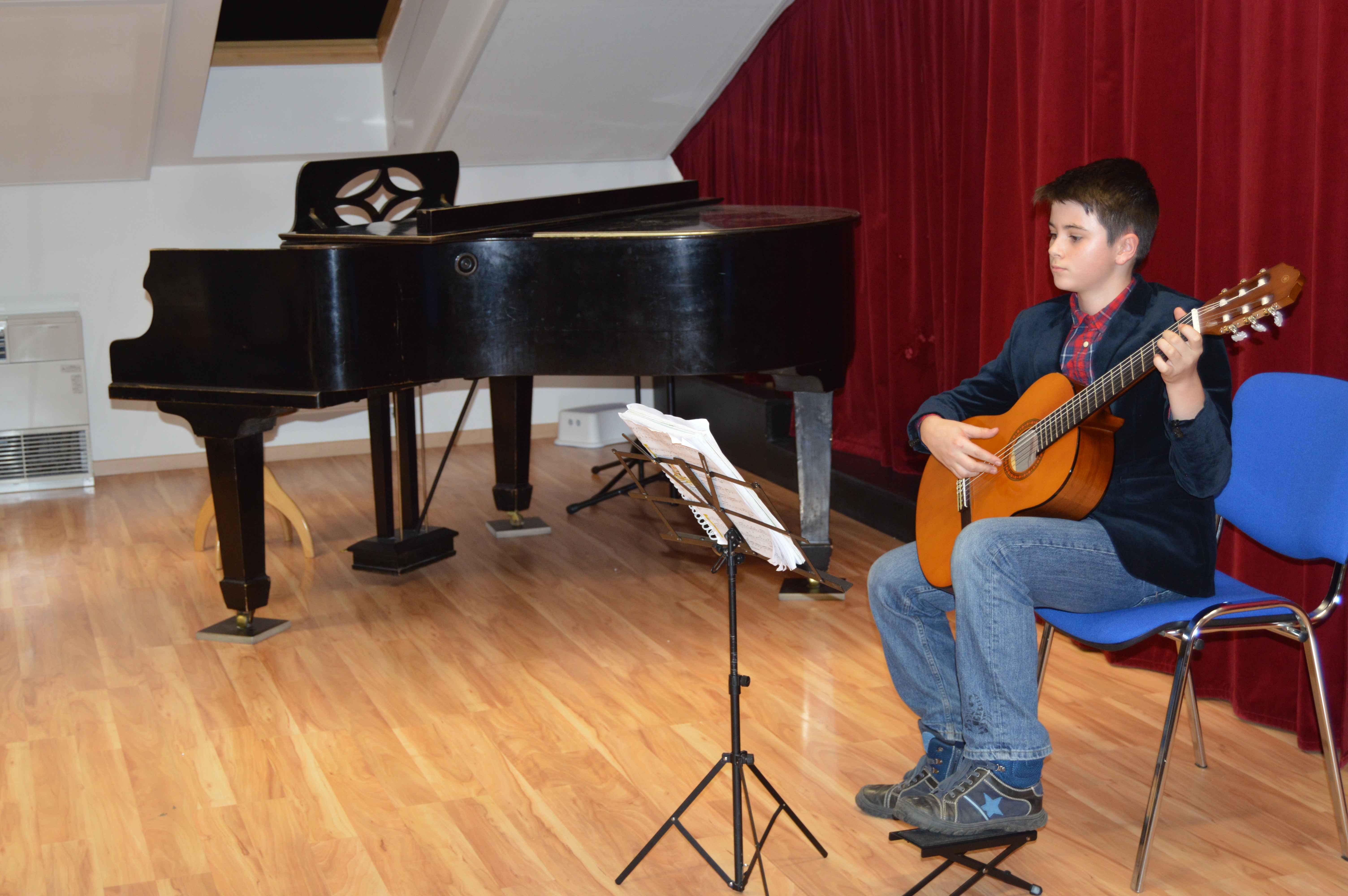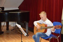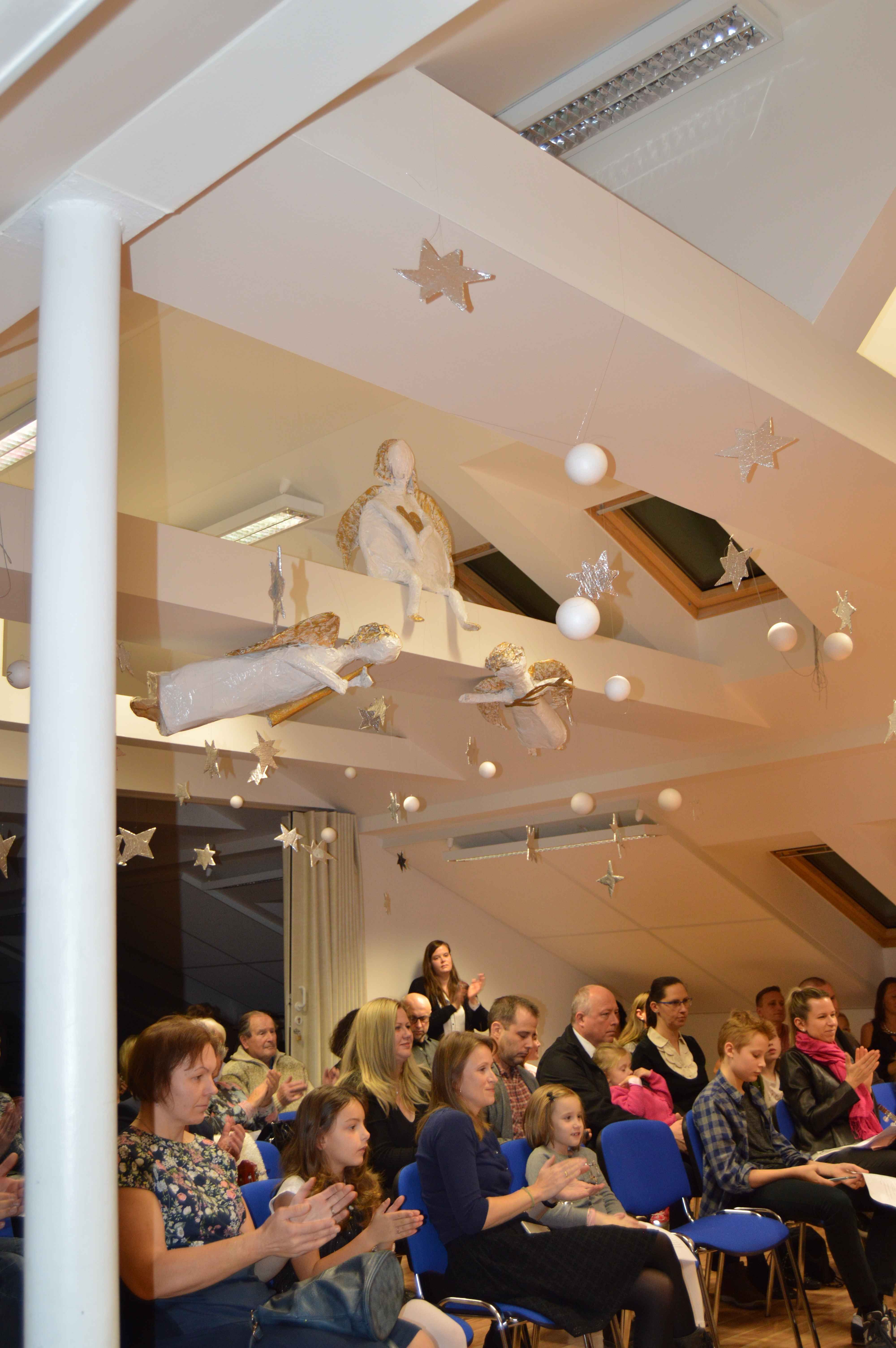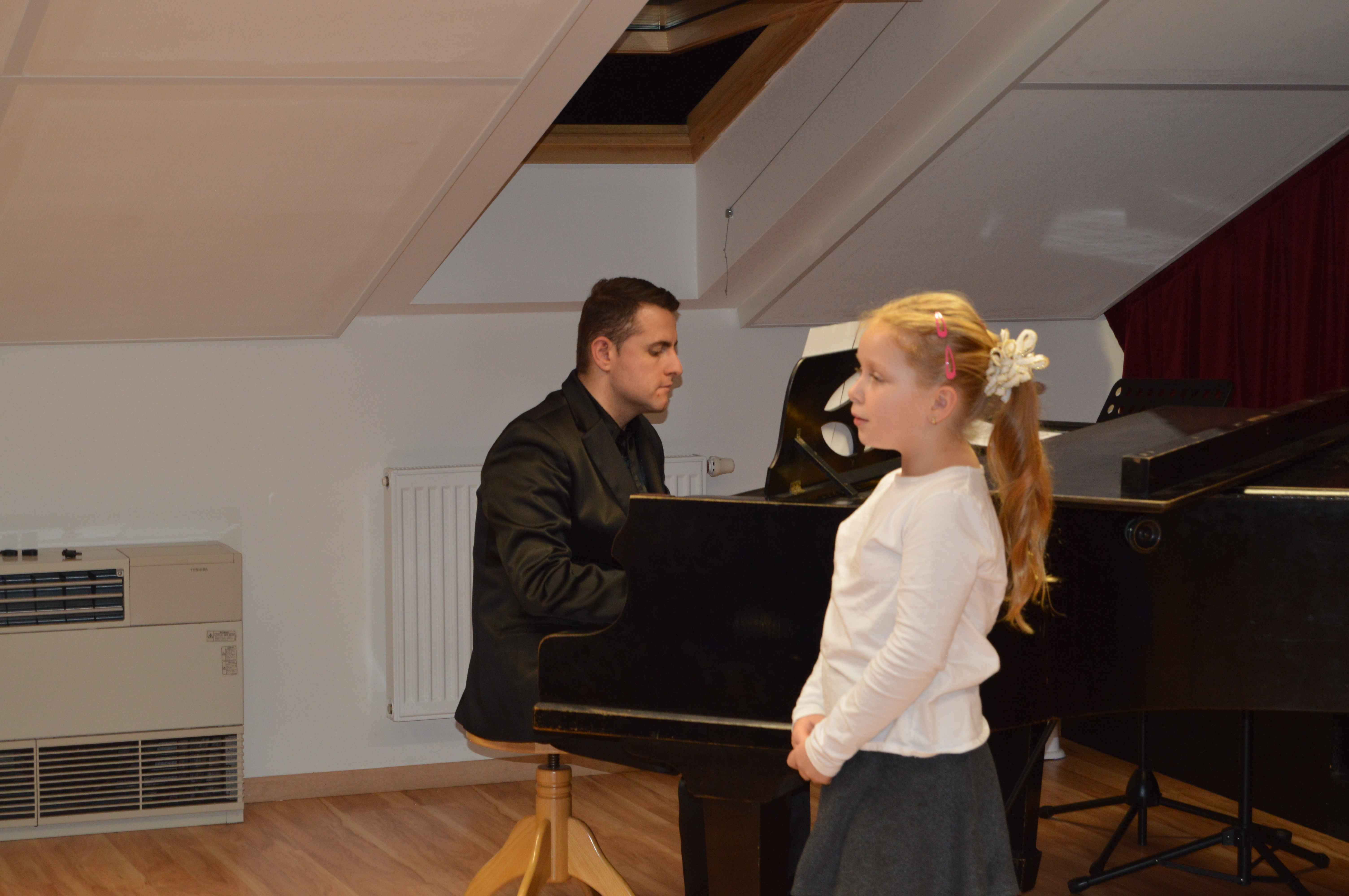 V pátek 14. prosince se v 18.00 hodin sešli v divadelním sálku školy žáci dvou oborů ZUŠ: žákyně z pěvecké třídy Julie Panenkové a žáci z kytarové třídy Zorana Rističe, aby všichni předvedli svým rodičům a dalším hostům výsledky své práce od začátku školního roku. Program byl zaměřen vánočně, ale zazněly i skladby a písně nevánoční. Výkony všech vystupujících byly vyrovnané, poděkování za přípravu žáků tak patří oběma vyučujícím, Krste Badarovskému za klavírní doprovody a Jitce Wernerové z výtvarného oboru ZUŠ za krásnou a elegantní vánoční výzdobu.