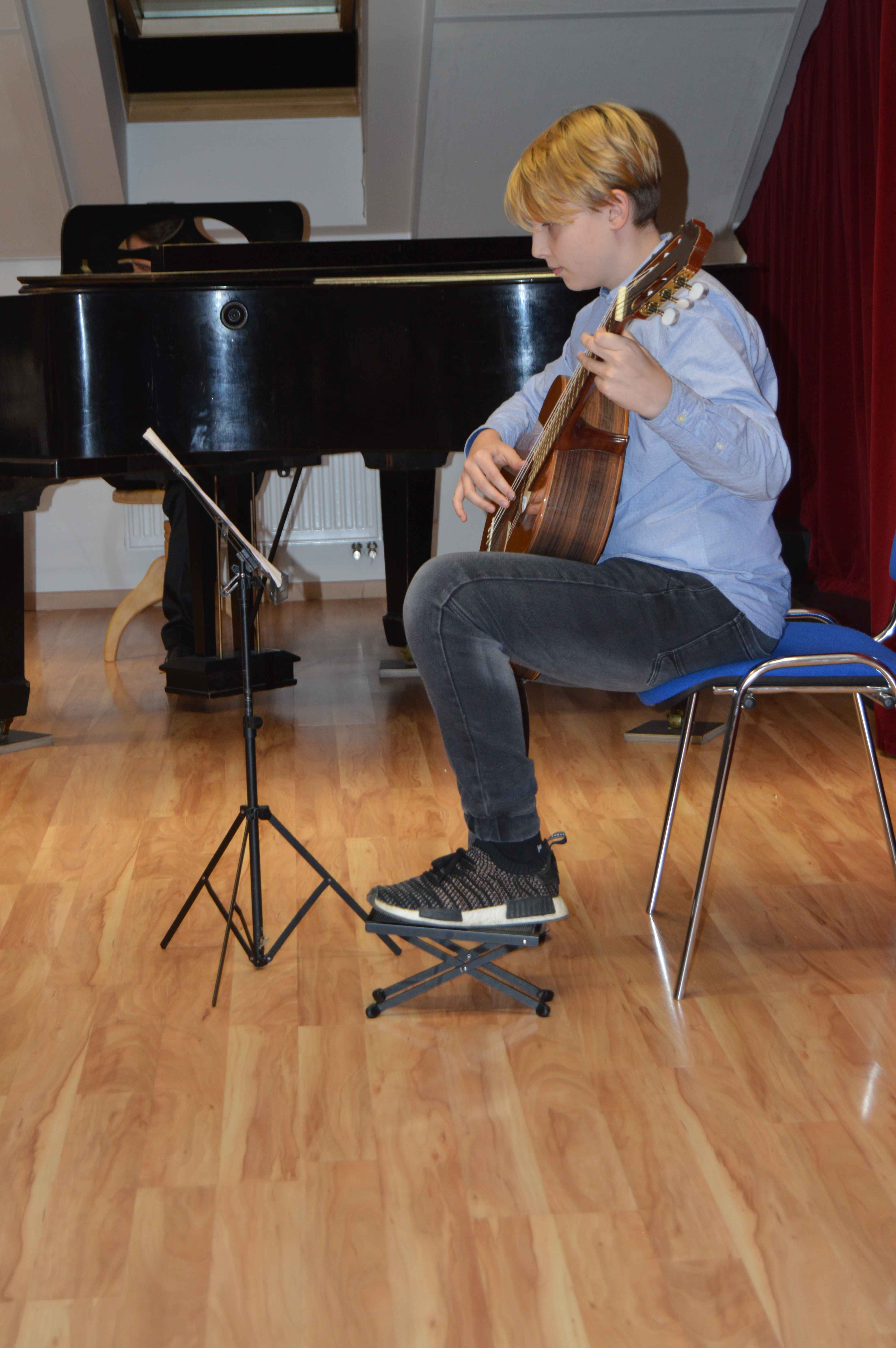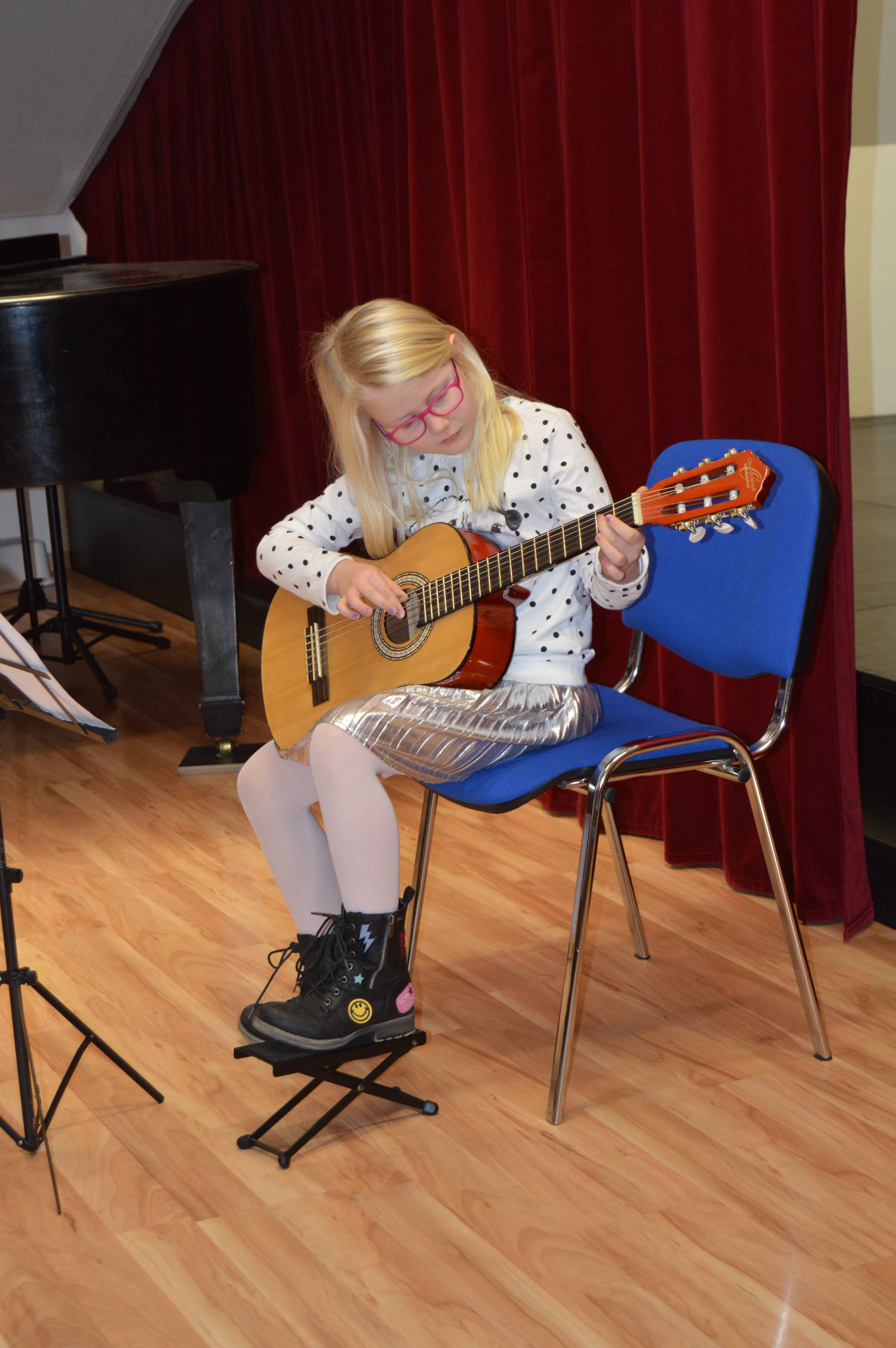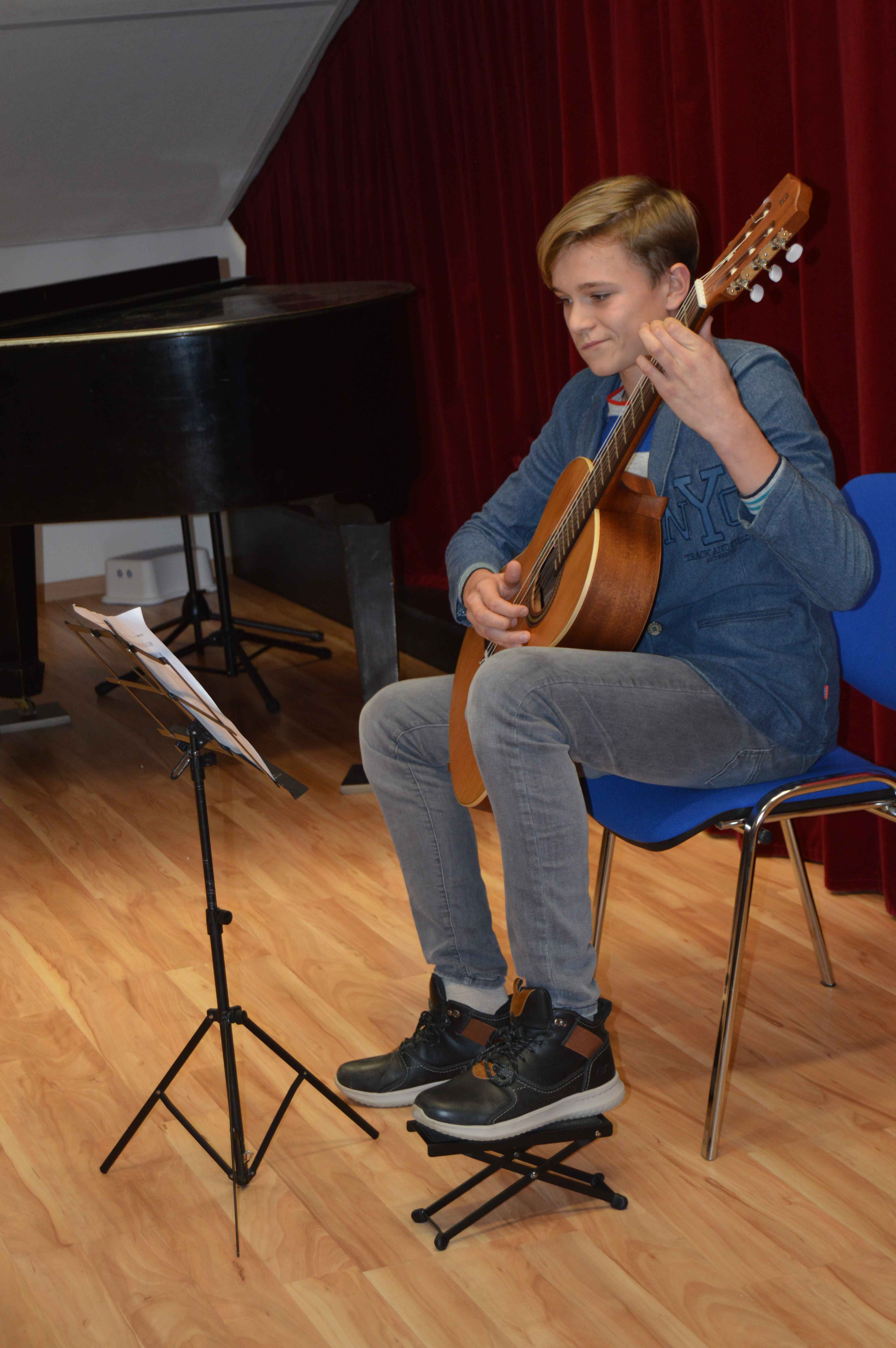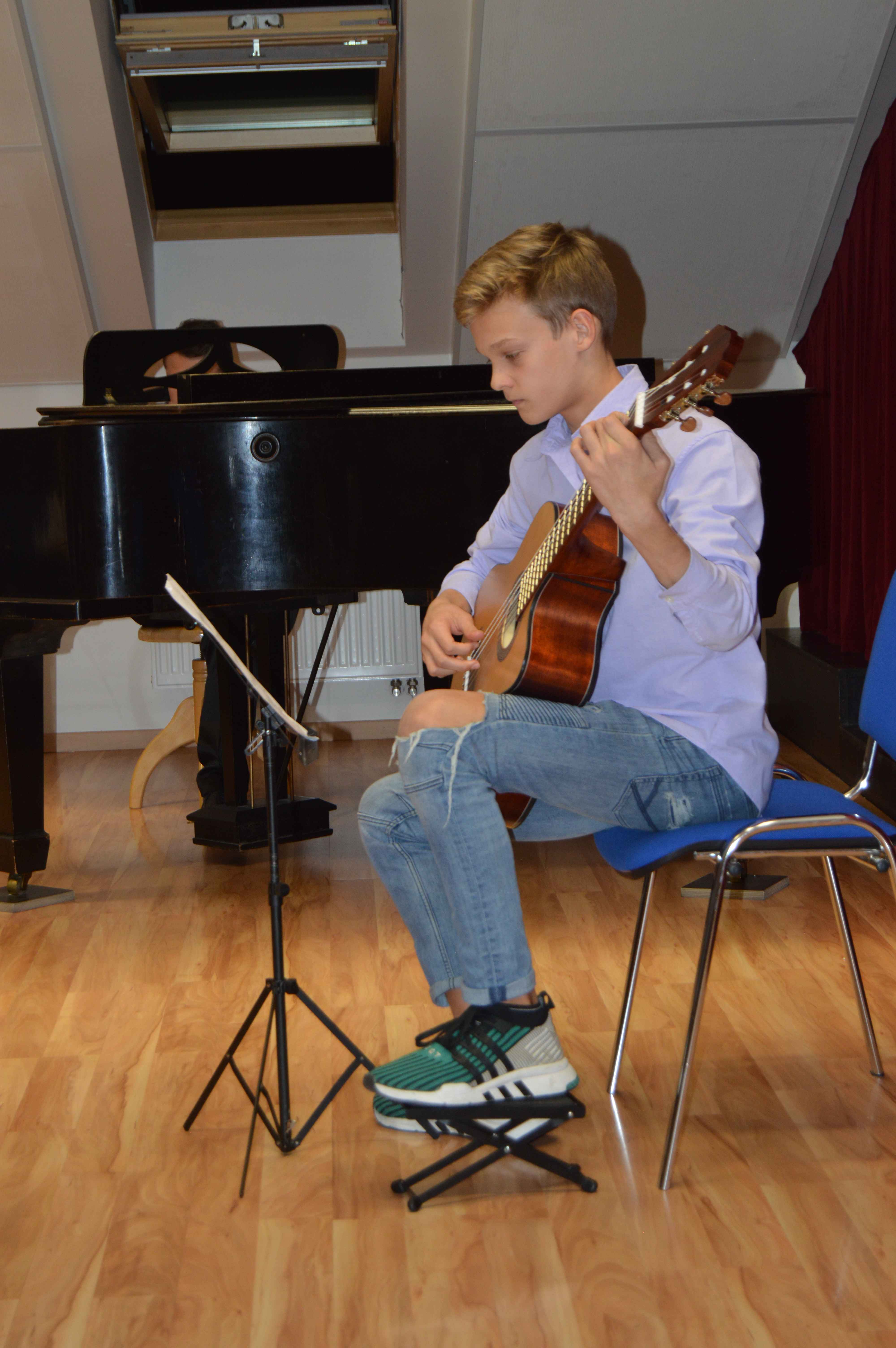 V pátek 14. prosince se v 18.00 hodin sešli v divadelním sálku školy žáci dvou oborů ZUŠ: žákyně z pěvecké třídy Julie Panenkové a žáci z kytarové třídy Zorana Rističe, aby všichni předvedli svým rodičům a dalším hostům výsledky své práce od začátku školního roku. Program byl zaměřen vánočně, ale zazněly i skladby a písně nevánoční. Výkony všech vystupujících byly vyrovnané, poděkování za přípravu žáků tak patří oběma vyučujícím, Krste Badarovskému za klavírní doprovody a Jitce Wernerové z výtvarného oboru ZUŠ za krásnou a elegantní vánoční výzdobu.