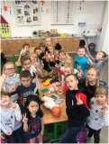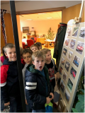 Hravou formou se děti také seznámily s dobou před revolucí. Při té příležitosti jsme navštívili Retro výstavu s výstavou dětských výtvarných prací na Městském úřadě Jesenice a následně jsme si ve třídě ukazovali některé dobové předměty – Mončičáky, digi hry, céčka…