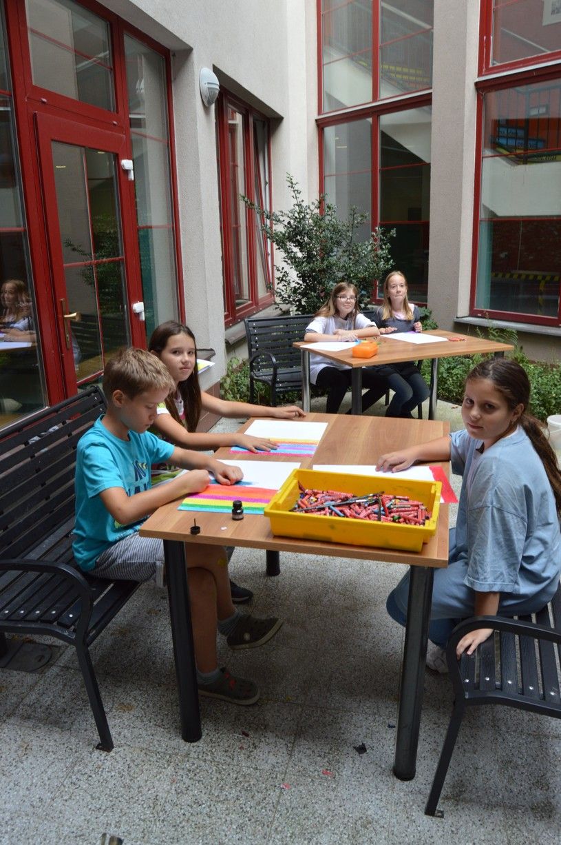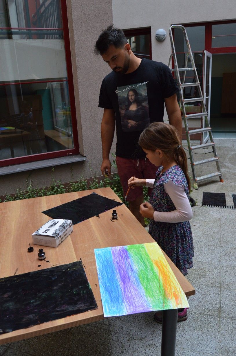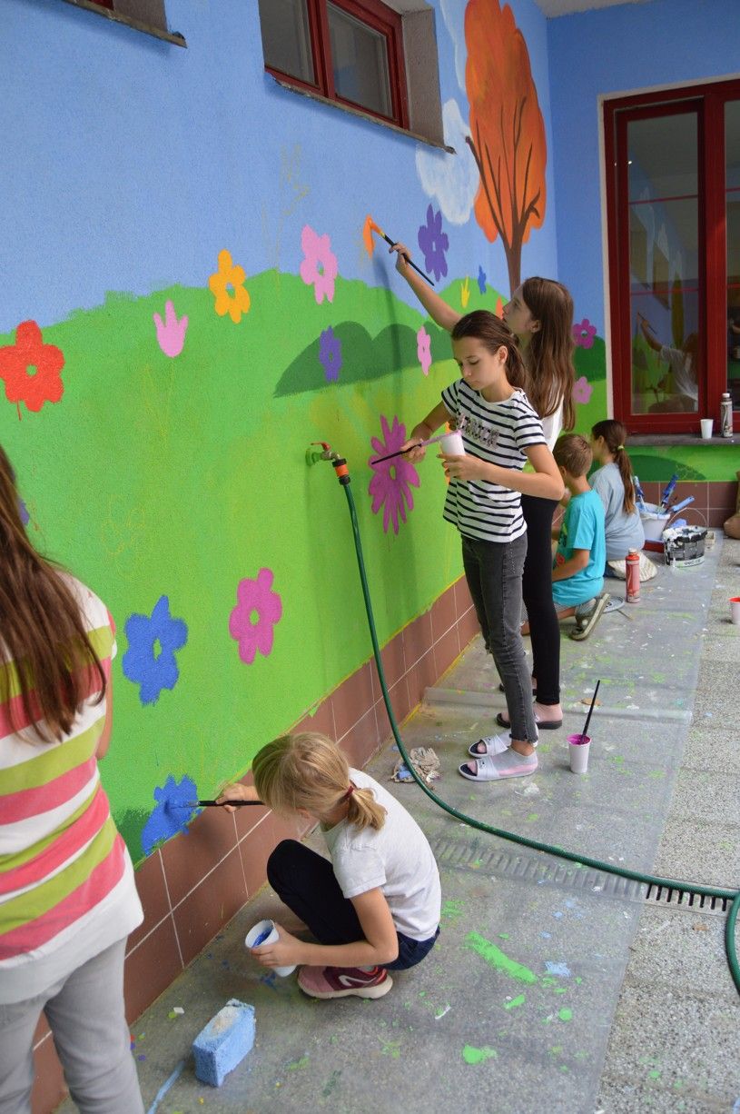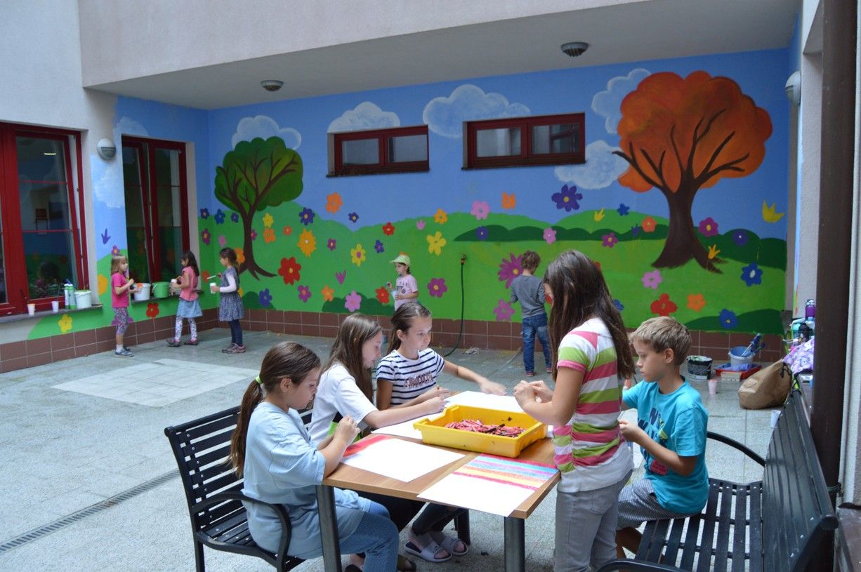 Po zahájení výuky v hromadných oborech základní umělecké školy 14. září začali malí i větší výtvarníci pod vedením Mgr. Tibora Rozsnyó tvořit nejen ve výtvarném ateliéru, ale rozhodli se po poradě s vedením školy vlastnoručně barevně vymalovat a „ilustrovat“ atrium v přízemí školy, které bylo horkých dnech využíváno pro výuku ve vybraných předmětech. Všechny děti práce mimořádně bavila, došlo tak doslova k propojení teorie (výtvarné) s praxí. Veselé barvy a přírodní motivy projasnily doposud šedivé zdi a vytvořily tak v atriu prostředí, které bude přitažlivé jak pro výuku, tak pro nejrůznější volnočasové aktivity.