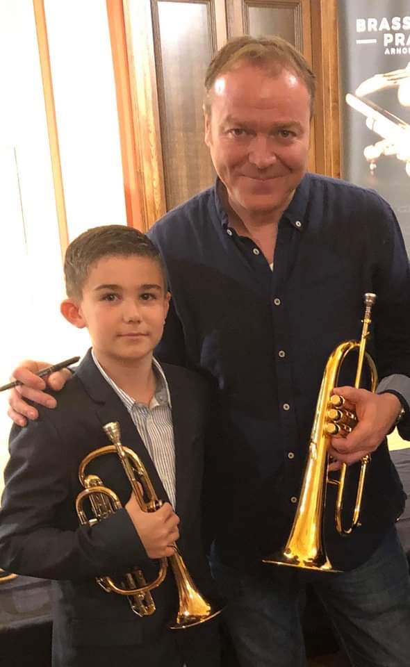 Druhá část odpoledního workshopu byla pedagogicko – interpretační. Pan Tarkövi pracoval s dvěma studenty z Pražské konzervatoře na skladbách, které oni momentálně cvičí. Věnoval se barvě a šířce tónu, melodickému přístupu k hudebním frázím, obsahu sdělení ve frázích a preciznímu nasazení tónu. Velký důraz kladl na široký a silný dechový sloupec. Mnohokrát zvuk trubky přirovnával k lidskému hlasu a názorně předváděl, jak moc spolu souvisí např. neuvolněný zpěv s neuvolněným tónem trubky a naopak uvolněný s uvolněným. Po skončení workshopu nastala společná diskuse a pro zájemce možnost autogramů a fotek. Před i po workshopu jsme měli možnost zahrát si na vystavené mistrovské nástroje rakouské značky Schagerl, které zapůjčil největší český obchod s žesťovými nástroji Brass Studio Kinkal. Po dodatečném „pokochání se“ krásnými trubkami jsme s žáky vyrazili na dlouho chystanou návštěvu mého kolegy nástrojaře Františka Ibla, který nám na našich „běžných“ nástrojích seřídil vše potřebné a provedl „běžný“ servis. Poté už nás čekalo vyvrcholení kulturního maratonu, čímž byl koncert Gábora Tarköviho za doprovodu Moravian Brassbandu pod taktovkou Chuheie Ivasakiho pro změnu v síni Antonína Dvořáka opět v Rudolfinu.