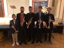 Koncert, který jsme měli možnost pozorovat přímo z první řady, měl v programu skladby mnoha hudebních žánrů od baroka, klasicismu, filmové hudby až po hudbu soudobou a populární, a to včetně světové premiéry Koncertu pro trubku a brassband skladatele a trumpetisty Ondřeje Moťky, který sám s brassbandem hrál. Sólového partu se bravurně zhostil Gábor Tarkövi. Stejně tak i několika dalších skladeb od virtuózních až po lyrické a romantické. Vše, co jsme se dověděli na odpoledním workshopu, jsme měli možnost slyšet i „na ostro“ a s plným nasazením večer. Po poslední skladbě na programu během asi 30 vteřin stálo celé publikum a po vytleskaném přídavku stálo znovu… Hudebníky tak ocenilo tou nejvyšší možnou poctou. Závěrem nezbývá než opět poděkovat za krásné a inspirující zážitky, tentokrát ve světě klasické hudby. (text bez redakční úpravy)