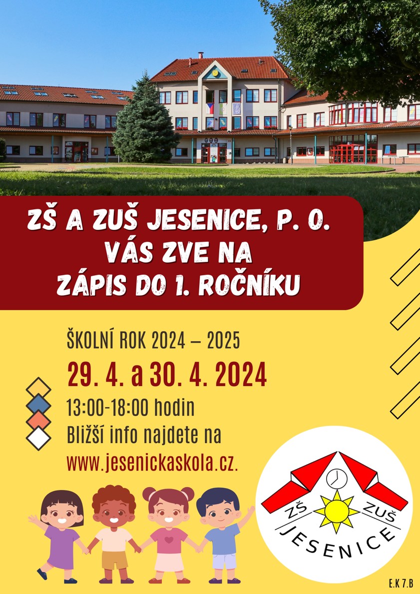 ZÁPIS DO 1. ROČNÍKU PRO ŠKOLNÍ ROK 2024 - 2025