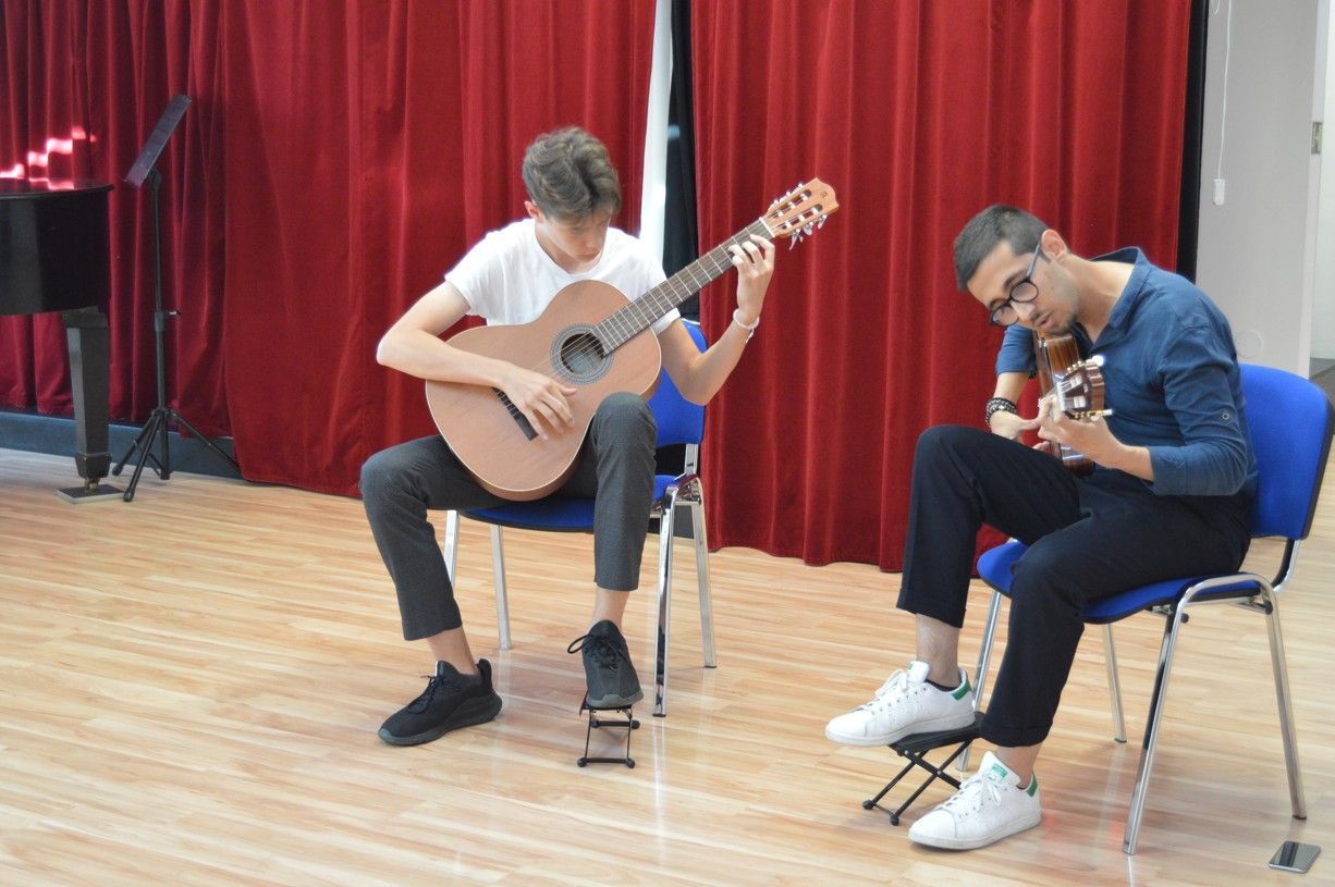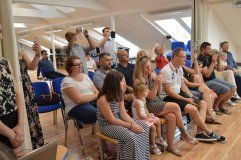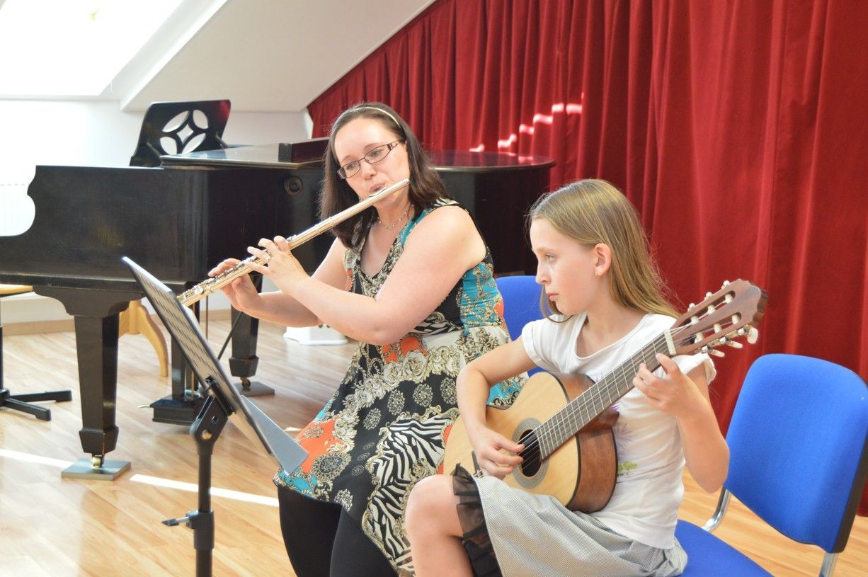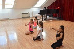 V pondělí 24. června se v divadelním sále školy sešli rodiče malých i větších tanečnic, jichž se po peripetiích s předchozím pedagogickým vedením tanečního oboru doslova na poslední chvíli ujala nová taneční pedagožka MgA. Helena Ratajová. Ta během necelých tří měsíců dokázala téměř nemožné: připravila se dvěma skupinami dívek celkem tři choreografie, v nichž probudila v děvčatech opět zájem o moderní scénický tanec a o celkově pohybovou kulturu. Přišla také s nápadem propojit i v takto krátkém čase taneční obor s hudebním. Učitel Josef Bárta tak spolu s žákyní Isabelou Soukupovou, klarinetistkou, živě doprovodili jednu z choreografií na téma populárních Pirátů z Karibiku. Další choreografie byly hudebními vstupy proloženy, představili se v nich se svými žáky kytarista Zoran Ristič se svým žákem Ivanem Lubyako a Štěpánka Zámečníková se svou žákyní Markétou Laštovkovou. Poděkování patří zaslouženě všem vystupujícím a jejich pedagogům, stejně tak rodičům, kteří své děti v uměleckých zájmech podporují. Budeme rádi, když se v září do tanečního oboru přihlásí ještě další zájemci z řad dívek, ale i chlapců!