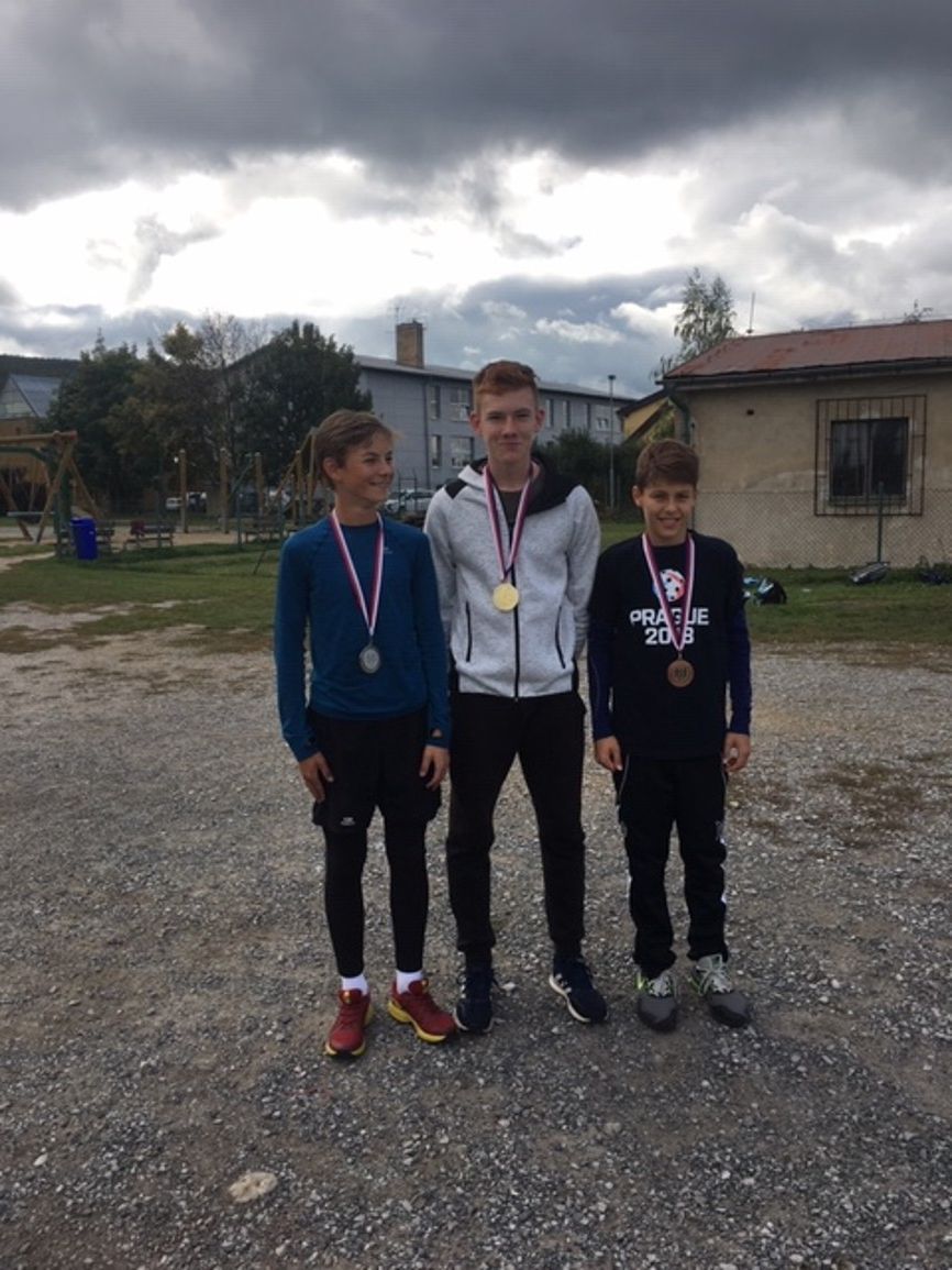 A to bylo vidět už od startu. Od zaznění startovní pistole, která odstartovala závod na 1500 m, to vypadalo velice dobře. Tři závodníci z Jesenice se pohybovali v první desítce. Po nervózním začátku se vedoucí pozice ujal Jakub Habr a roztrhal celé startovní pole. V čele si utvořil drobný náskok. Za ním běžela dvoučlenná skupina, ve které se držel náš Marek Navrátil. Do cíle doběhl jako první Jakub Habr, jako třetí Marek Navrátil a za ním se díky mohutnému finiši umístil na čtvrtém místě Ondřej Novotný. Jelikož se z každé školy počítaly pouze první tři nejlepší výsledky, měli jsme jistou i zlatou medaili za celý tým a tím pádem postup do krajského finále.