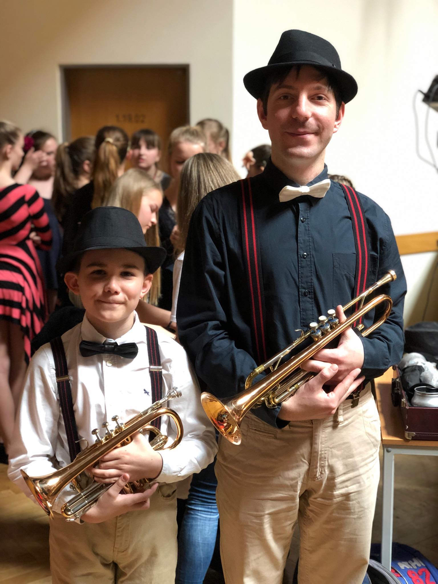 Dne 13. 4. 2019 se již tradičně v Jesenici uskutečnila přehlídka tanečních sestav pořádaná spolkem TS HAZARD z. s. Členka seniorského týmu paní Marie J. je matkou jednoho z mých mladších trumpetistů Matouše J. a protože Matoušovi trubka jde, požádalo nás prostřednictvím paní Marie J. vedení TS HAZARD z. s. o hudební vložku v taneční přehlídce. Letos pod názvem „Držte si klobouky! Budeme se vracet…“
