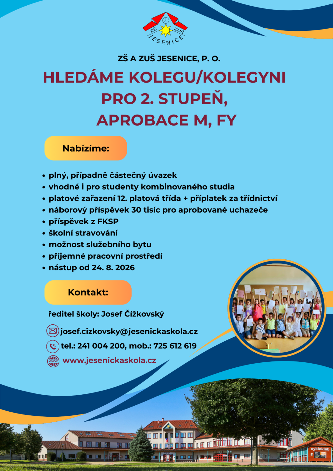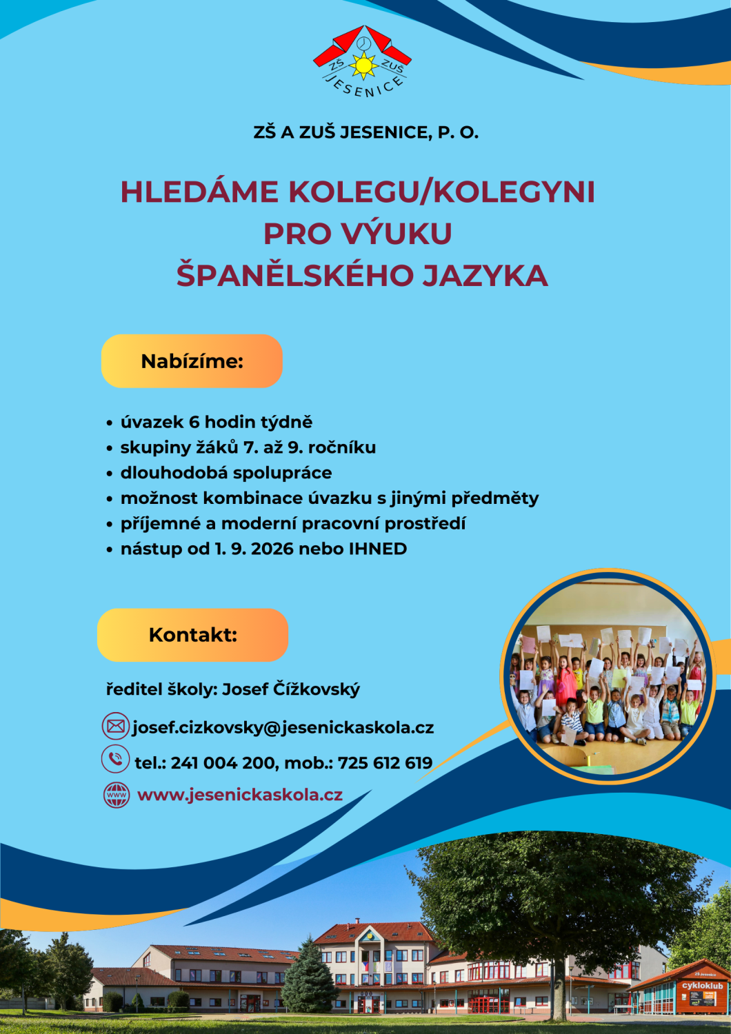 ZÁKLADNÍ ŠKOLA A ZÁKLADNÍ UMĚLECKÁ ŠKOLA JESENICE HLEDÁ NOVÉ KVALIFIKOVANÉ KOLEGYNĚ/KOLEGY NA NÍŽE UVEDENÉ PRACOVNÍ POZICE: